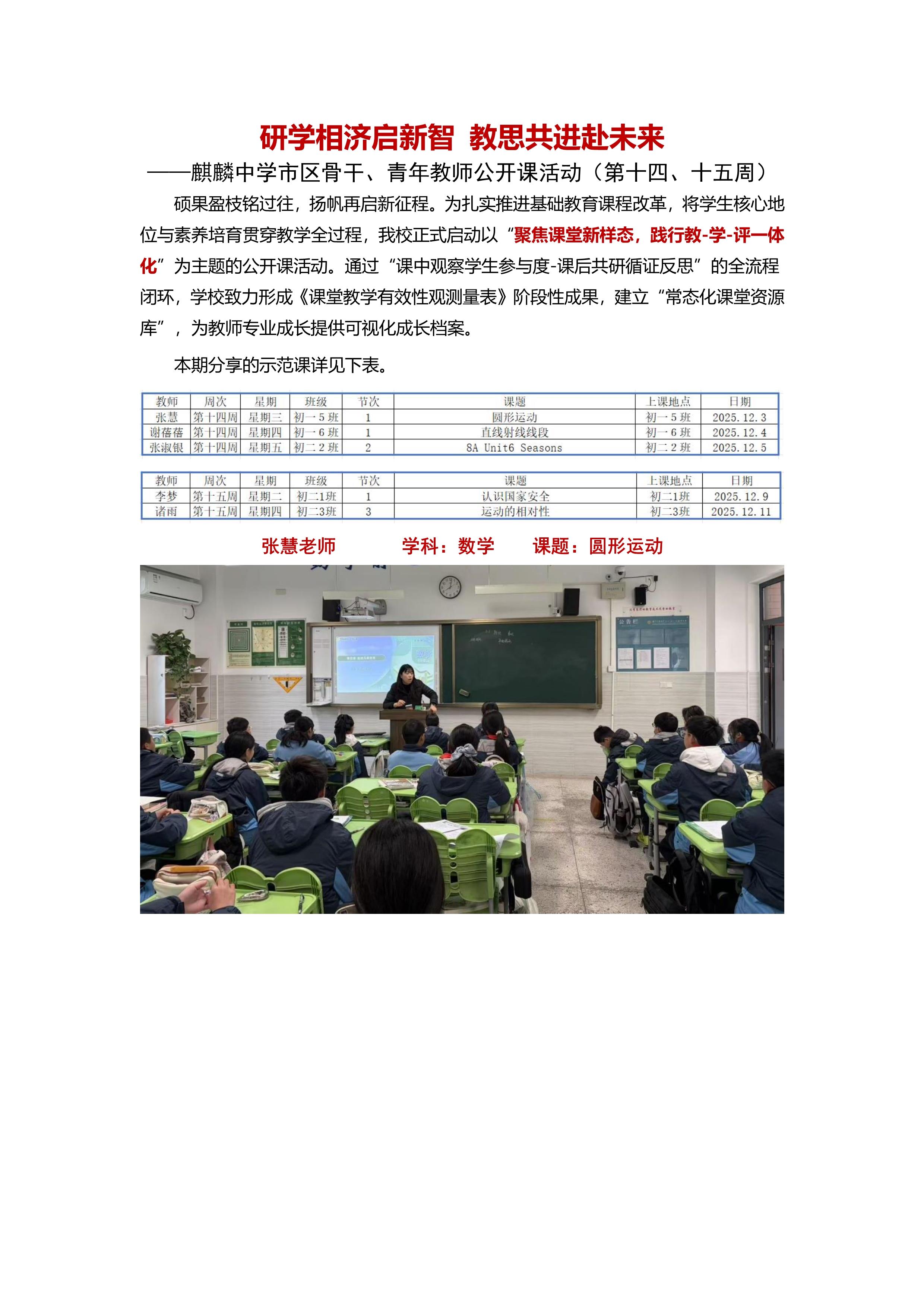 研学相济启新智 教思共进赴未来——麒麟中学市区骨干、青年教师公开课活动(第十四、十五周)
