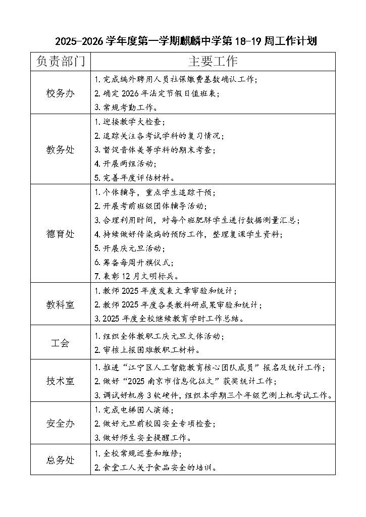 2025-2026第一学期第18-19周工作计划