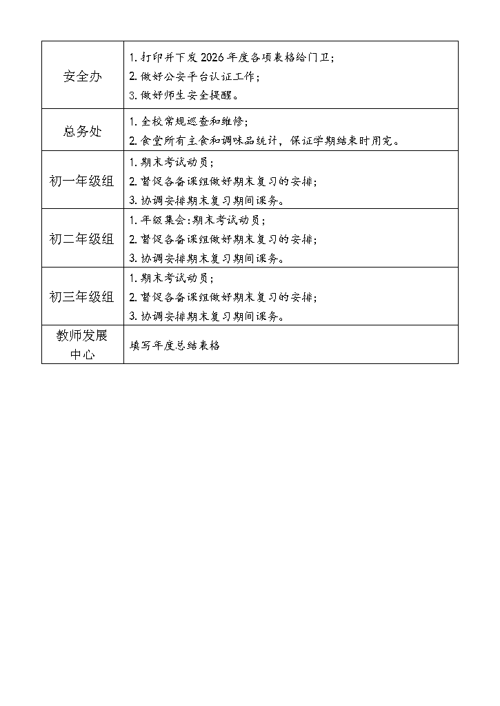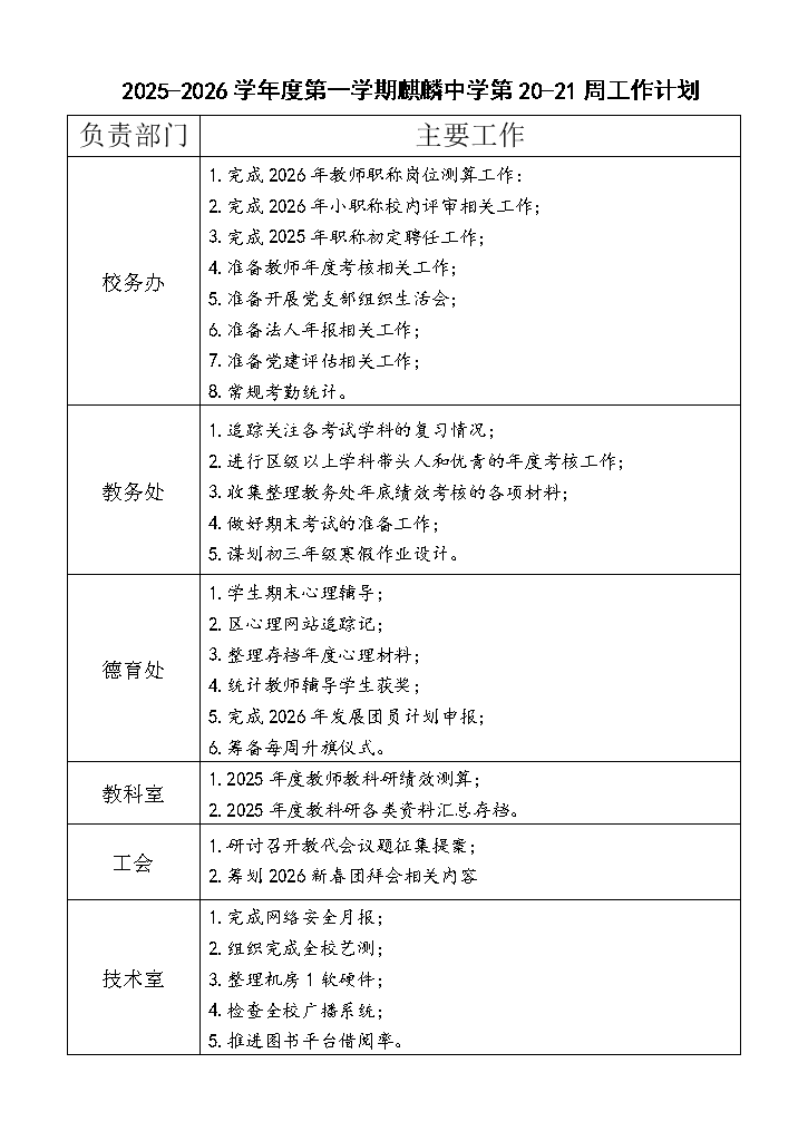2025-2026学年第一学期第20-21周工作计划